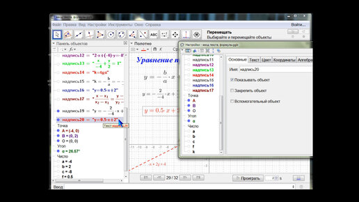 Ввод текста на рабочее поле. Использование значения объектов, полученных ранее