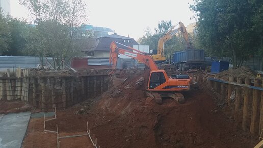 Вывоз грунта самосвалом. Рытье котлована экскаватором в Москве