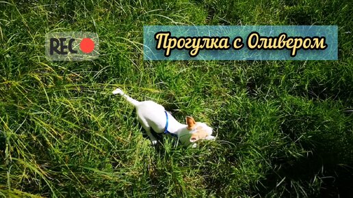 Щенок чихуахуа бегает по травке в саду. Показываю территорию за домом