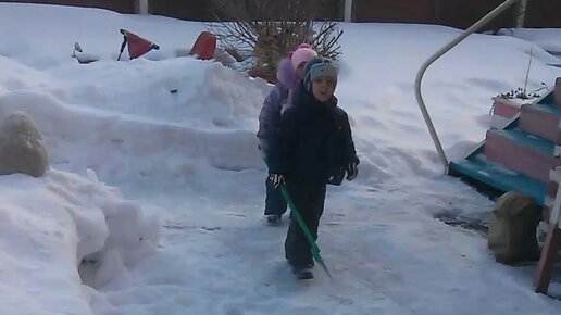 3-х-летние малыши помогают на участке