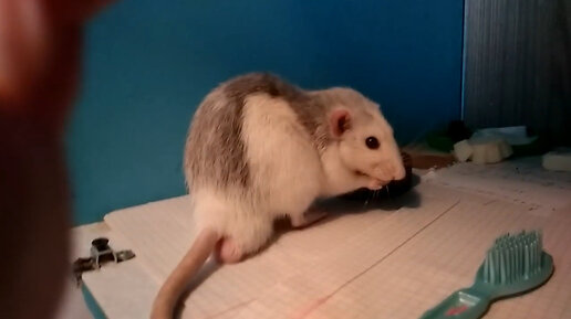 У крысы Дамбо Тео новый гамак. Понравится ли он Тео?