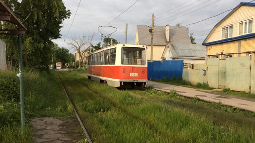 На трамвайной остановке / Жизнь у трамвайных путей / КТМ-5М3