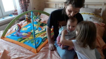 Как играть в "ладушки- ладушки"? Обучает пятимесячную крошку старшая сестричка.