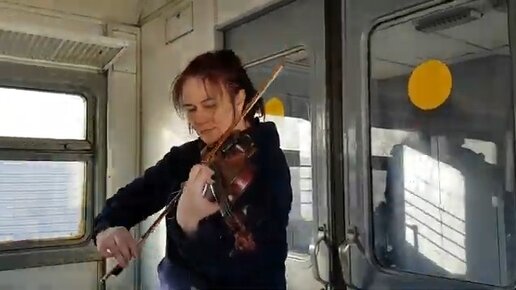 Играет на скрипке в русской электричке