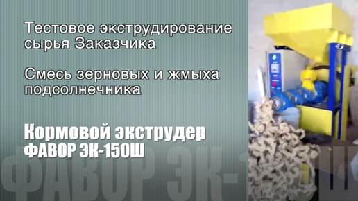 Экструдер для кормов ЭК-150Ш. Тестовое экструдирование смеси зерновых и жмыха подсолнечника. Краткий видеоотчет.