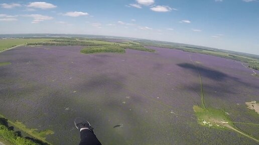 Очень красивый полет на параплане над полем в Подмосковье