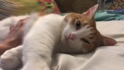 Кошка Рыся "сам на сам " намурлыкивает.
