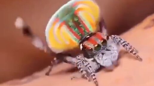 Паук-скакун вида Maratus kerri показываетт свой энергичный танец в попытке покорить ваши сердца.