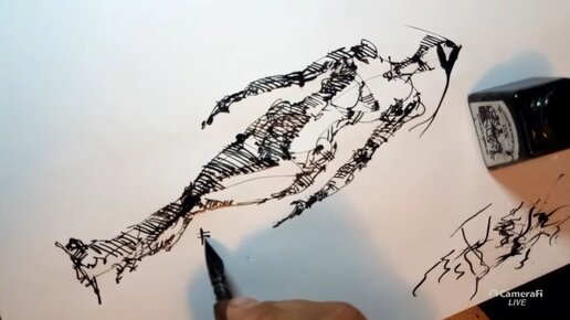 Игры в рисование. Лью случайные кляксы туши на лист и показываю как нарисовать фигуру человека красиво и просто