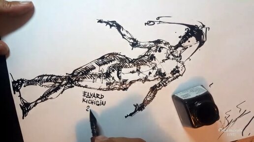 Рисование как игра. Лью лужи чернил на лист - и из них пытаюсь нарисовать красивую фигуру человека. Показываю все детали