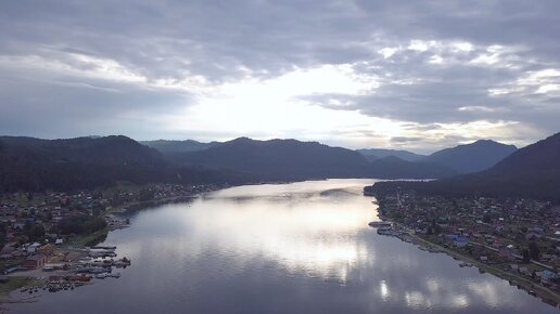 Вид на Телецкое озеро и Артыбаш с высоты птичьего полета