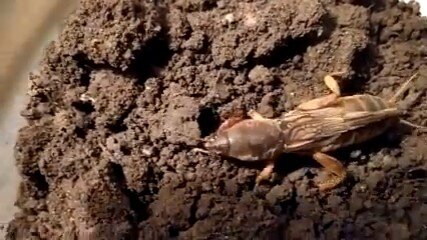 Что будет делать медведка, оказавшись в баллоне с землей? Я снял видео крупным планом.