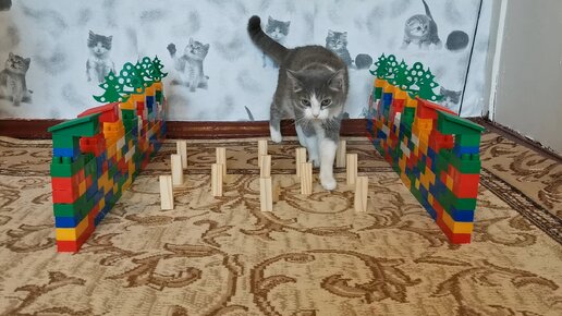 Препятствие челлендж! Кот&Кошка! 4 уровня сложности! Берегись домино!