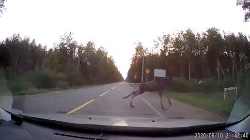 Выбежавший на дорогу лосёнок проверил реакцию водителя
