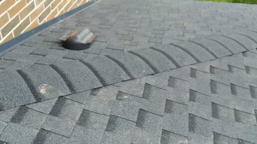 Установили слуховой аэратор,примыкание замазали герметиком.Коньковая гибкая черепица и кровля готова.