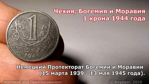 Монета 1 крона 1944 года Чехия, Богемия и Моравия