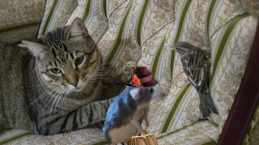Необычная дружба кота и воробья