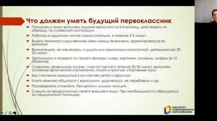 Готовность к школе. Взгляд на проблему с учётом психофизиологических особенностей развития ребёнка. Вебинар.