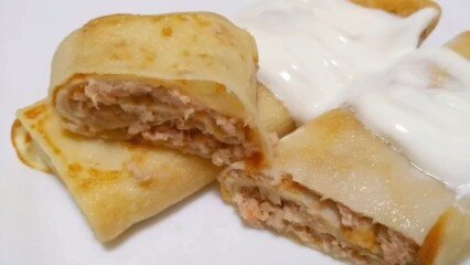 Съедаются вмиг! Как приготовить блинчики с нежной мясной начинкой.