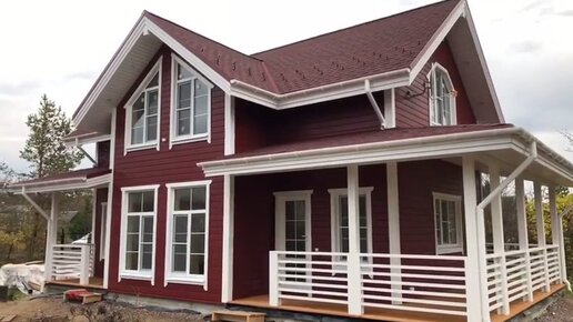 Красный каркасный дом 150 кв.м. Два этажа. 5 комнат, 2 санузла, огромная кухня и терраса 20 кв. м. Проект "Лорето".