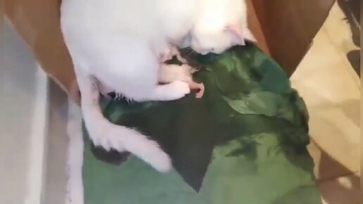 Первые роды Кошка пытается аккуратно умаститься и покормить малышей