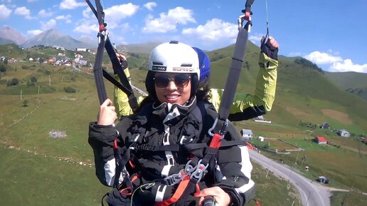 Заход двухместного параплана на посадку