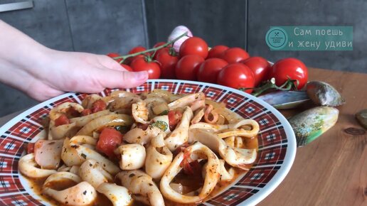 Кальмары в томатном соусе. Очень нежный и вкусный и простой рецепт.