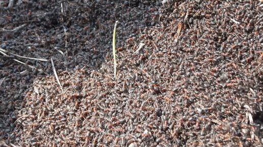 Пробуждение лесных муравьев или муравьиный хаос (греются на солнышке)