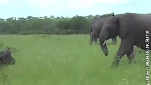 Игривый слон слегка пнул буйвола и заставил того погнаться за собой