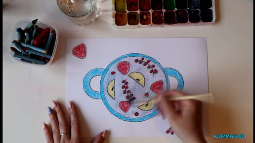 Рисуем с детьми лето "Компот из ягод и фруктов"