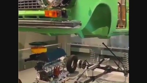 В музее подвесили автомобиль жигули, в полностью разобранном состоянии до мельчайших деталей