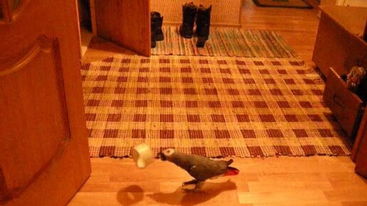Попугай развлекается с рулоном скотча