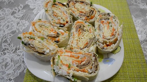 Закуска из лаваша .Салат со шпротами в лаваше.Вкусно и сытно.