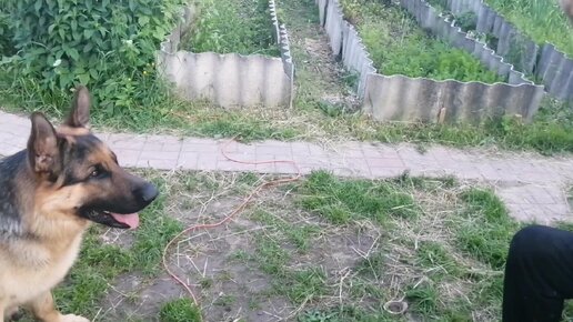 Немецкая овчарка. Даже в жару немножко занимаемся.