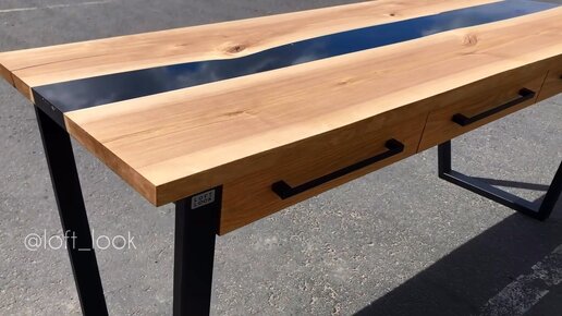 Прекрасный рабочий стол-река из слэбов Карельской берёзы!