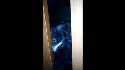 Кошка - мама учит подросшую дочку играть в "прятки" с хозяевами