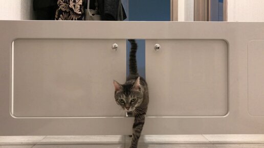 Реакция кота на новый челендж: на сколько в узкий проход сможет пролезть кот.