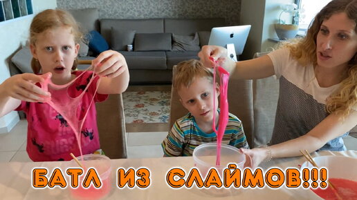 Полина с Никитой устроили батл из слаймов.