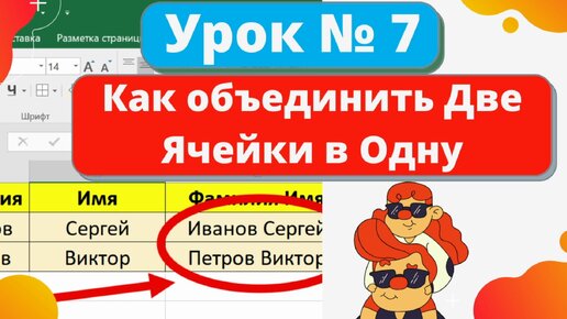 Урок № 7 Как объединить две ячейки в одну в Excel