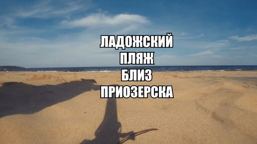 Жёлтый песок и голубое небо пустынного пляжа на Ладожском озере