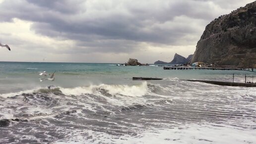 Шторм в Крыму! Набережная Судака зимой.