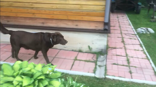 Любимый лабрадор гуляет по участку. Проверяет своим владения