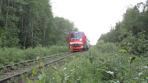 Одинокий вагончик бежит по летнему лесу