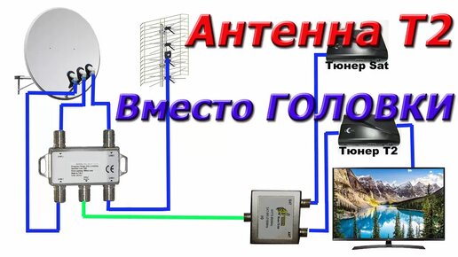 Эфирная антенна Т2 вместо головки на спутниковой антенне