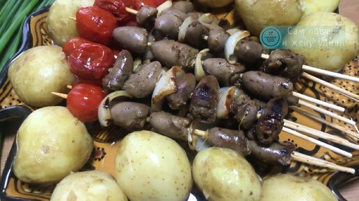 Пикантный ароматный и очень нежный шашлык из куриных сердечек