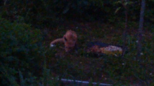 Лиса нагло гуляет по моей даче и ест еду, оставленную для ёжиков