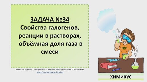 Задача 34 Свойства галогенов, реакции в растворах, объёмная доля газа в смеси