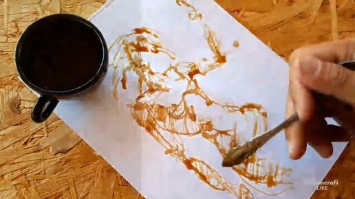 Рисую с помощью кофе и чайной ложечки фигуру человека.