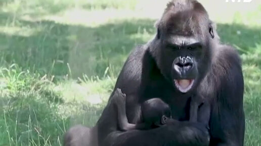 Детёныш гориллы только родился, а его уже показывают посетителям