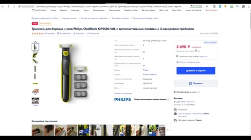 Триммер для бороды и усов Philips OneBlade\Промокод ОЗОН\Скидки ОЗОН